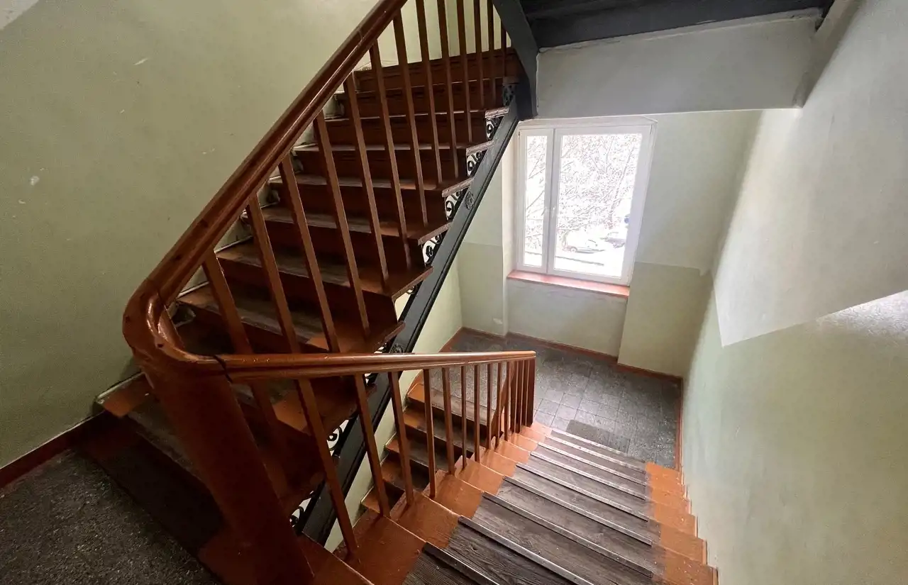 Nieruchomość położona jest na trzecim piętrze w 5-piętrowej przedwojennej kamienicy.