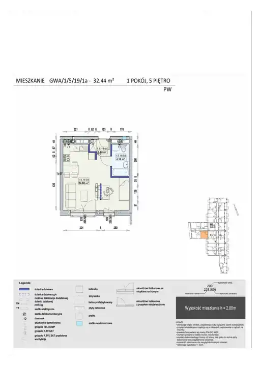 - Charakterystyka mieszkania 32.44 m2, 1 pokój