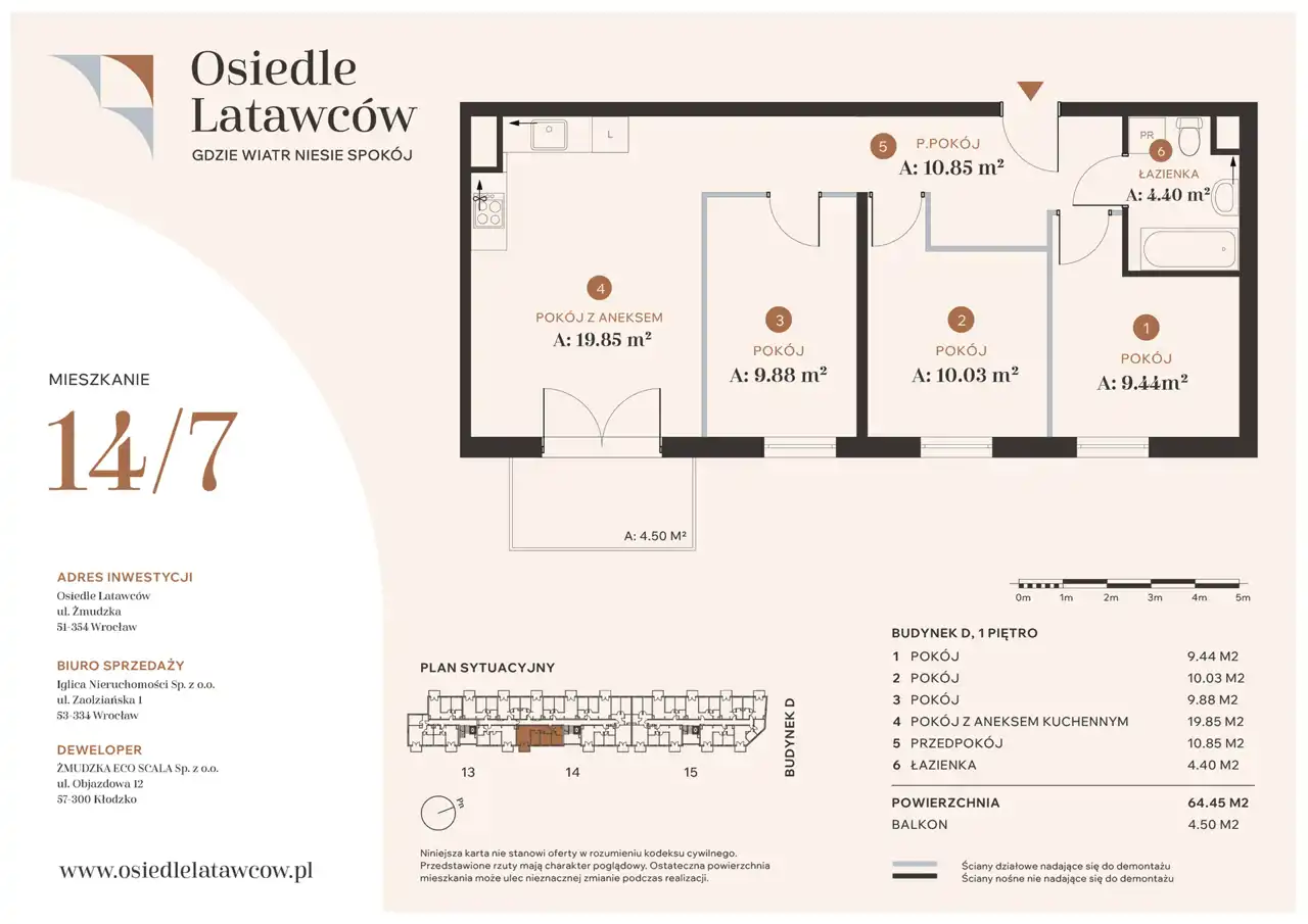 - Charakterystyka mieszkania 64.45 m2, 4 pokoje