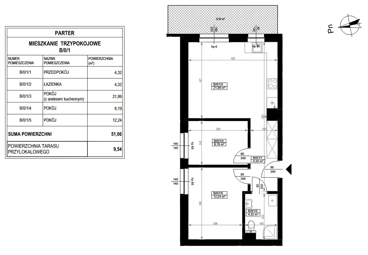 - Charakterystyka mieszkania 51.06 m2, 3 pokoje