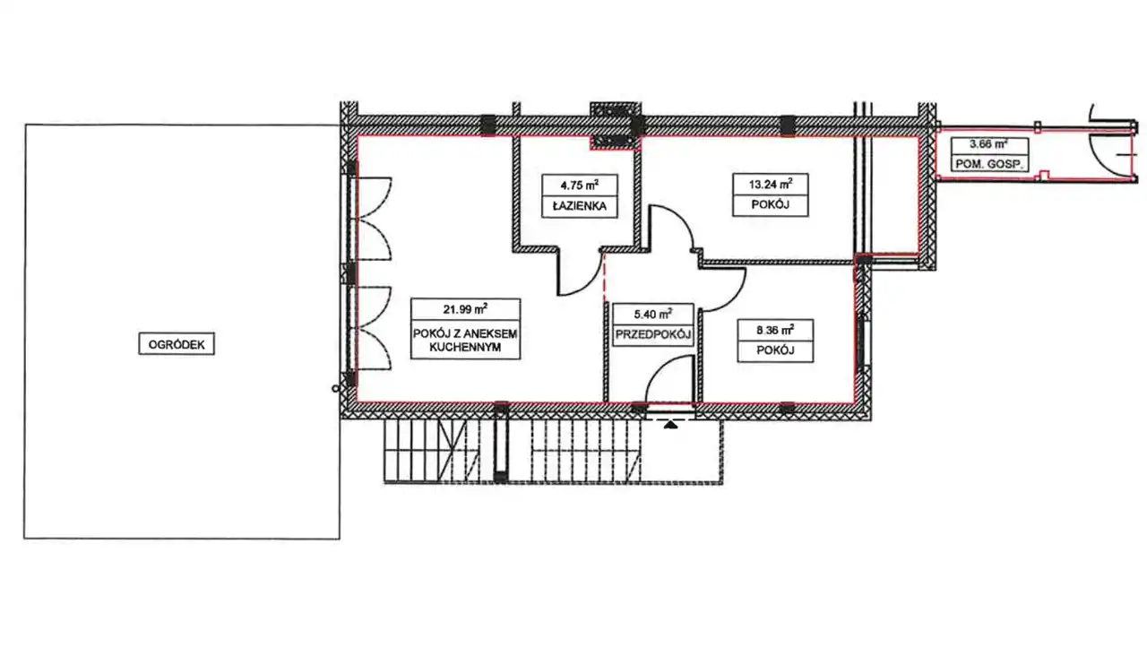 - Charakterystyka mieszkania 53.74 m2, 3 pokoje
