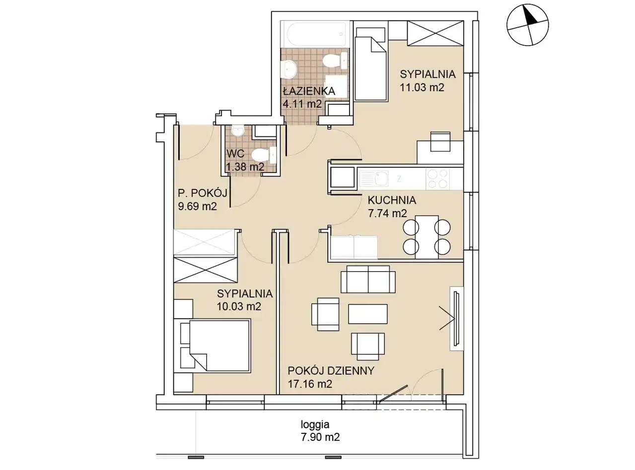 - Charakterystyka mieszkania 61.14 m2, 3 pokoje