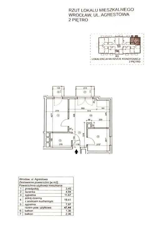 - Charakterystyka mieszkania 47.44 m2, 3 pokoje