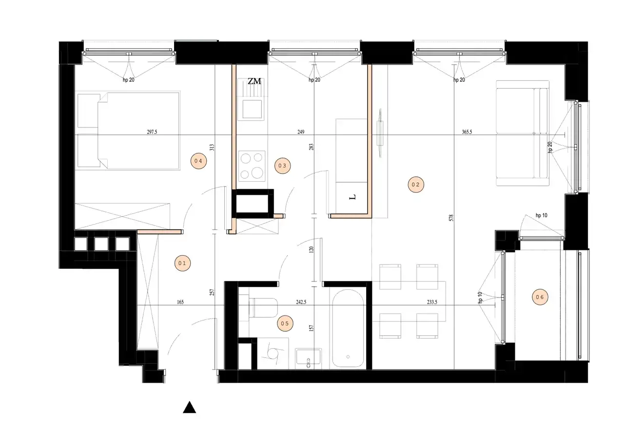 - Charakterystyka mieszkania 44.64 m2, 2 pokoje