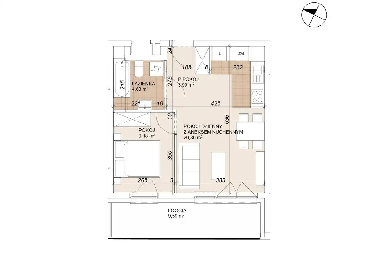 - Charakterystyka mieszkania 38.36 m2, 2 pokoje