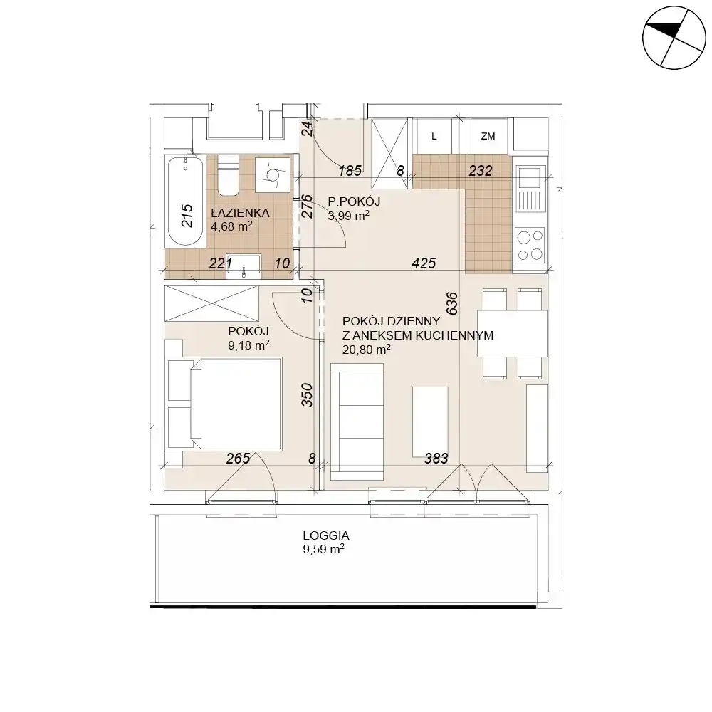 - Charakterystyka mieszkania 38.65 m2, 2 pokoje