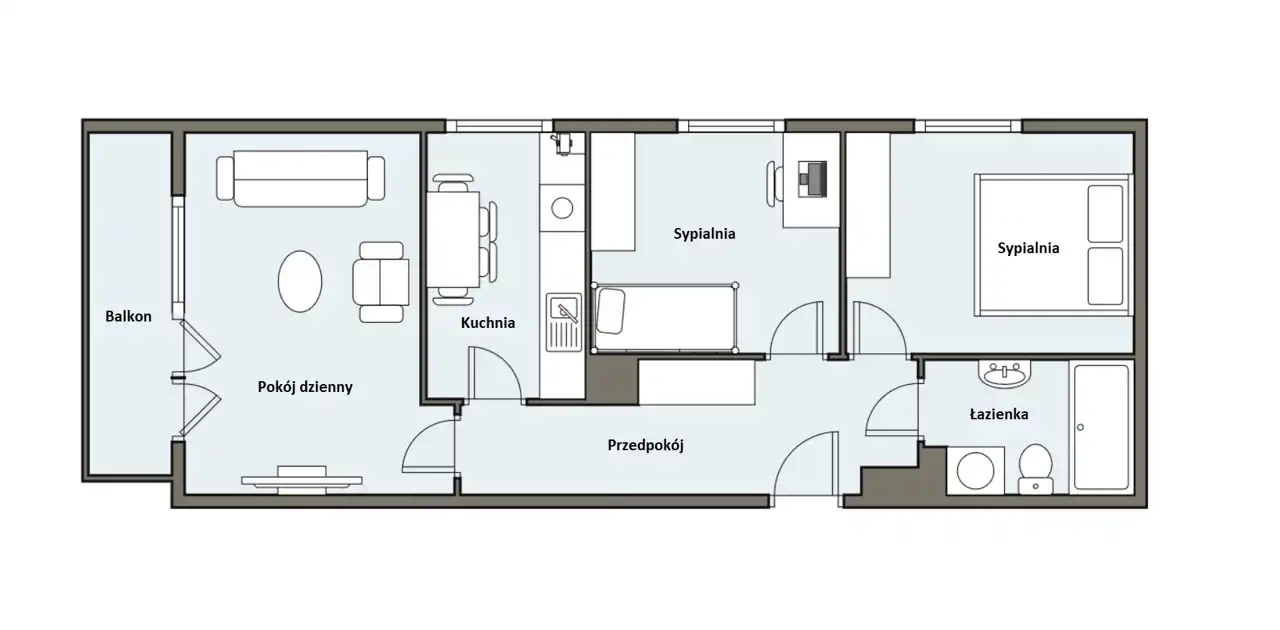 - Charakterystyka mieszkania 60 m2, 3 pokoje