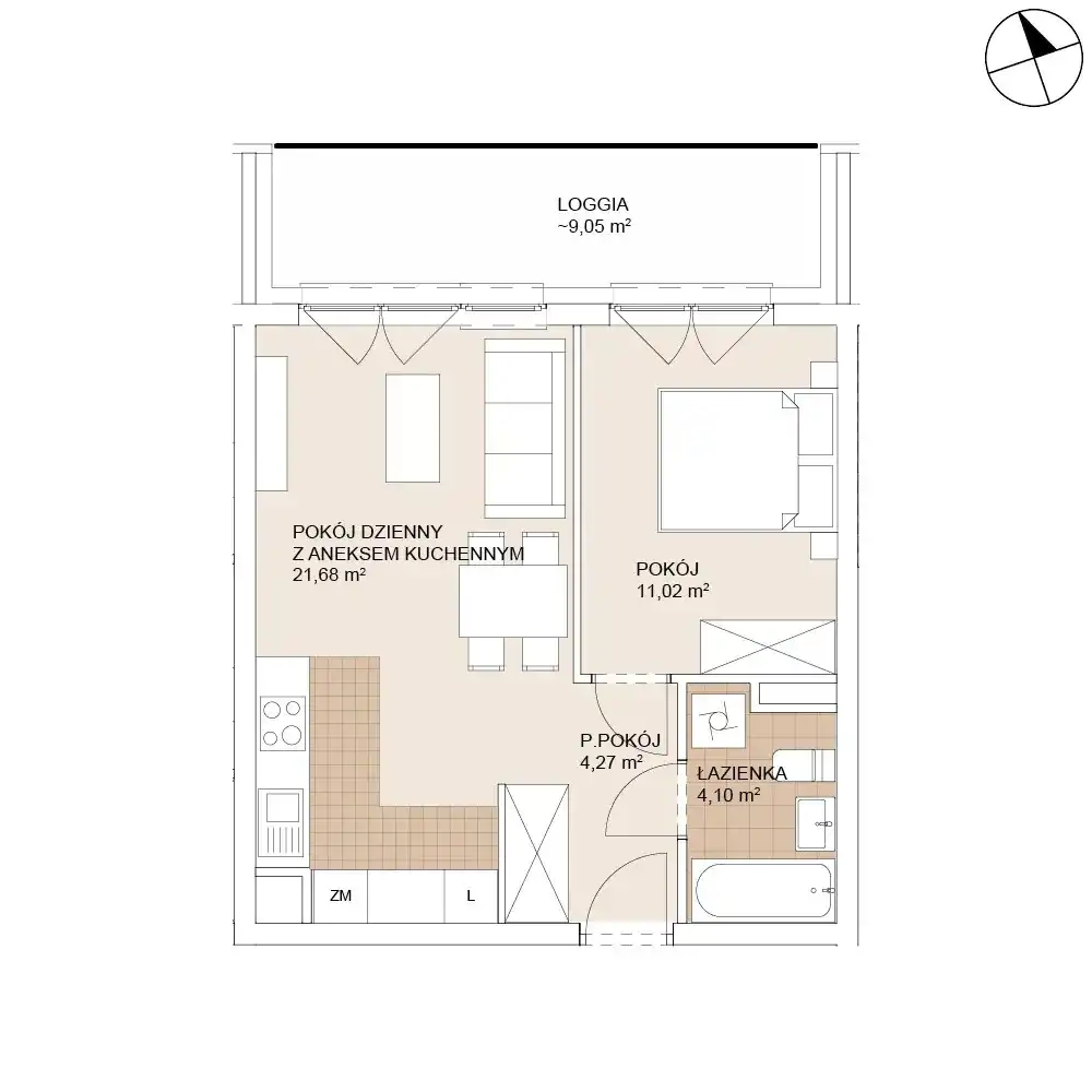 - Charakterystyka mieszkania 41.07 m2, 2 pokoje