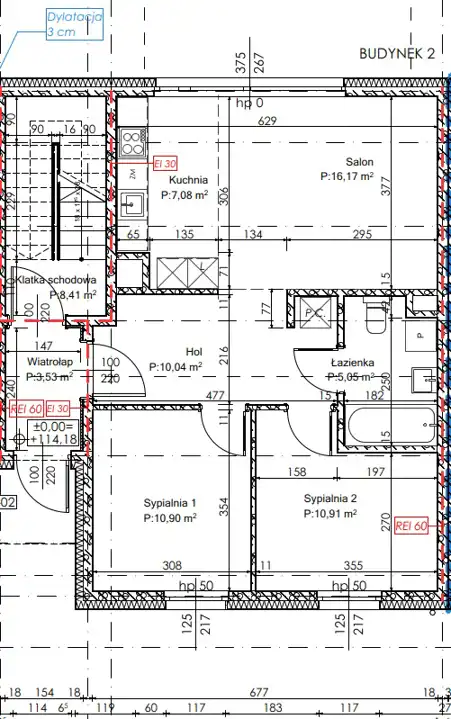 - dwie sypialnie (10,9 i 10,91 m2)