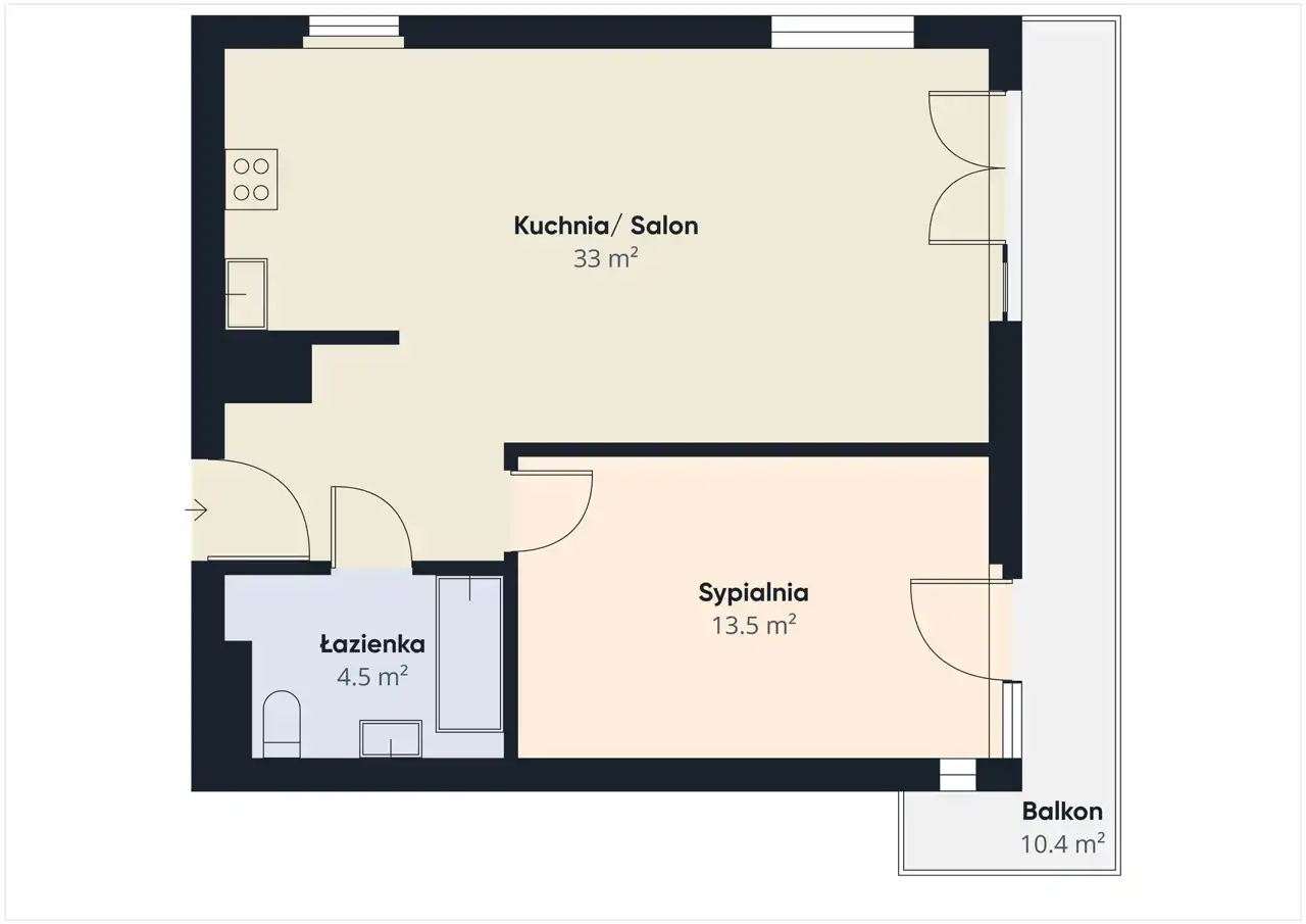 - Charakterystyka mieszkania 52.05 m2, 2 pokoje