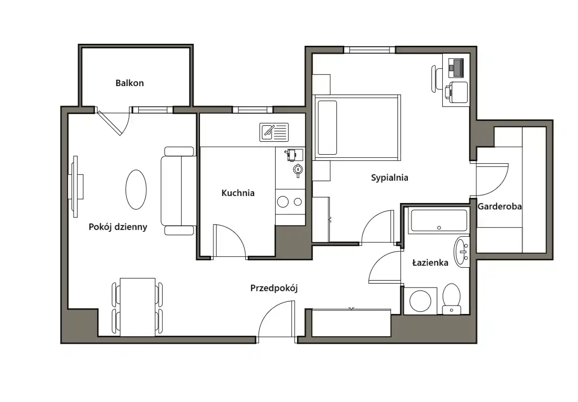 - Charakterystyka mieszkania 57.57 m2, 2 pokoje