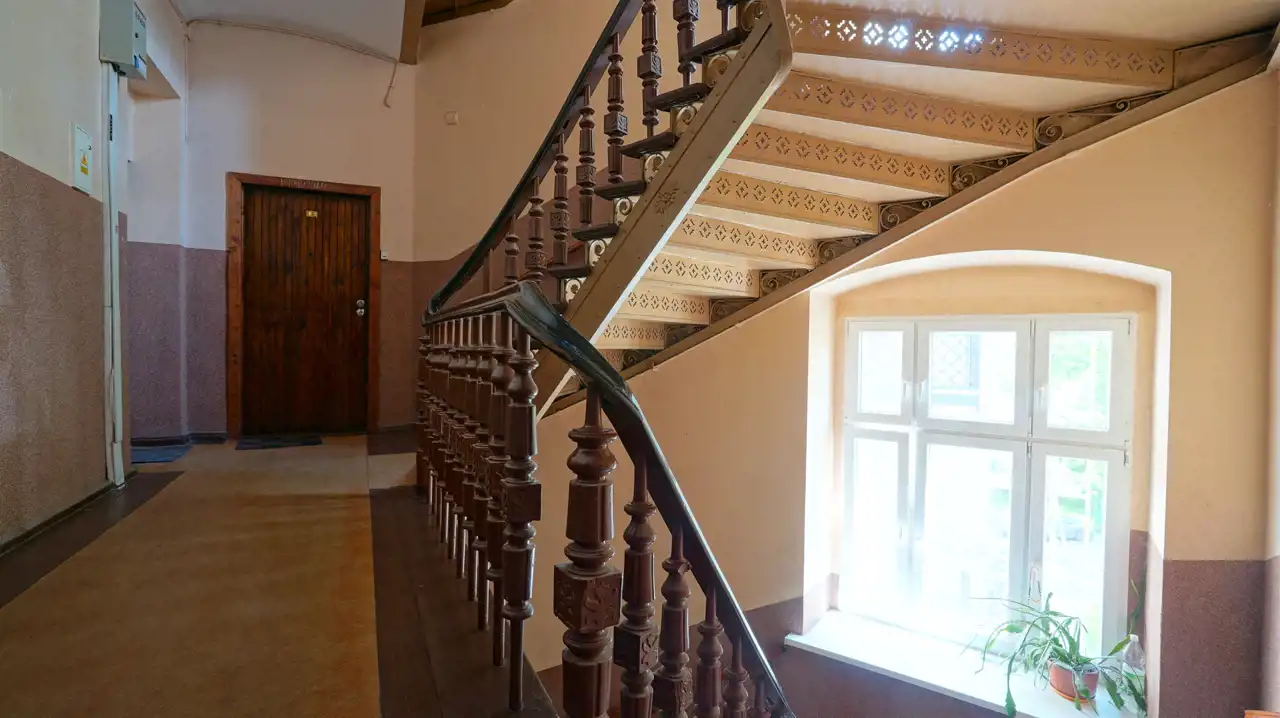 - wyjątkowa pod względem drzwi wejściowych do budynku a także klatki wewnętrznej ze schodami jak na zdjęciu.