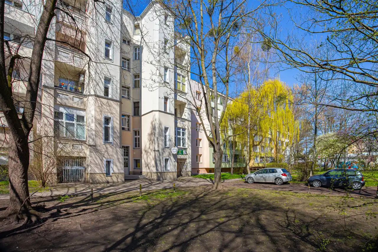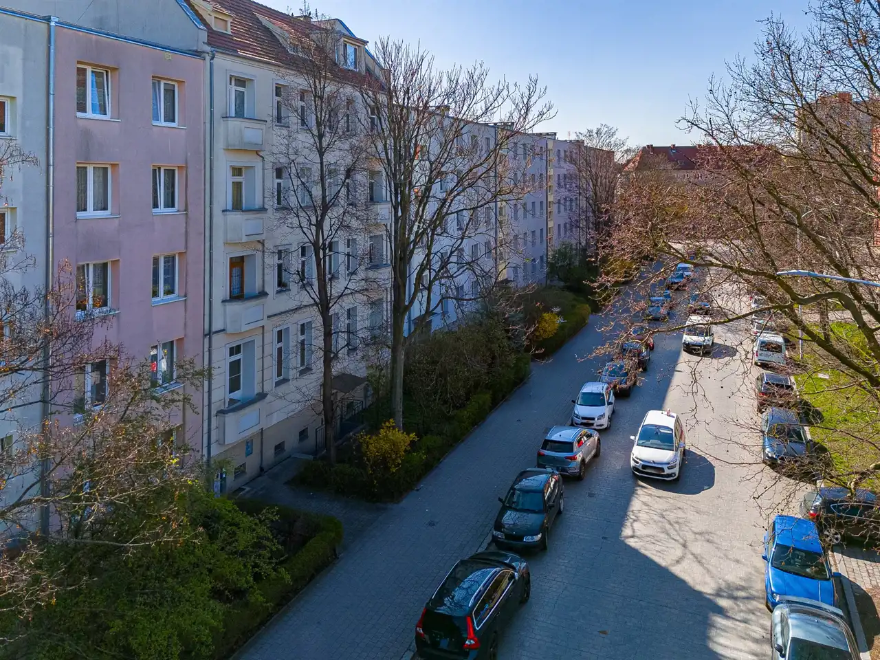 Mieszkanie znajduje się na 4. piętrze wyremontowanej i ocieplonej przedwojennej kamienicy przy ulicy Jemiołowej we Wrocławiu. Mieszkanie zostało wyremontowane, wymieniona jest instalacja elektryczna, zamontowane są 3-szybowe plastikowe okna.