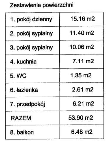 - Charakterystyka mieszkania 54 m2, 3 pokoje