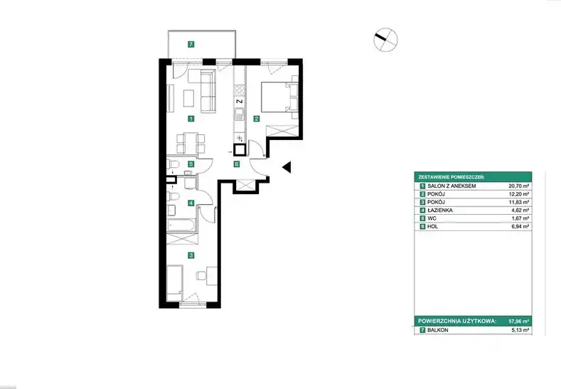 - Charakterystyka mieszkania 58 m2, 3 pokoje