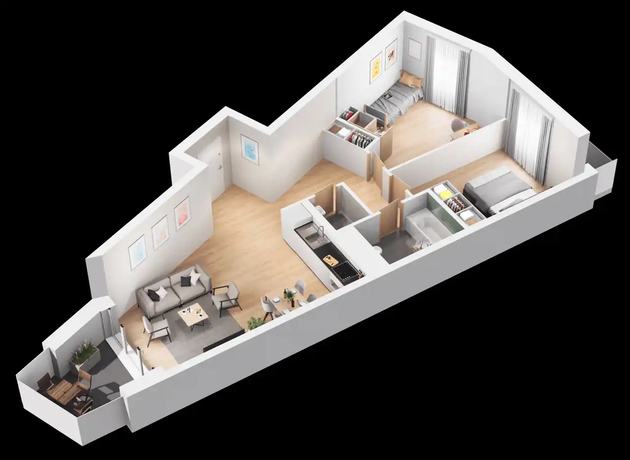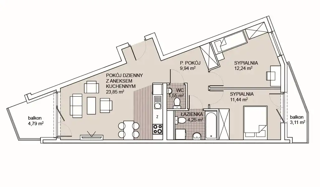 - Charakterystyka mieszkania 63.3 m2, 3 pokoje