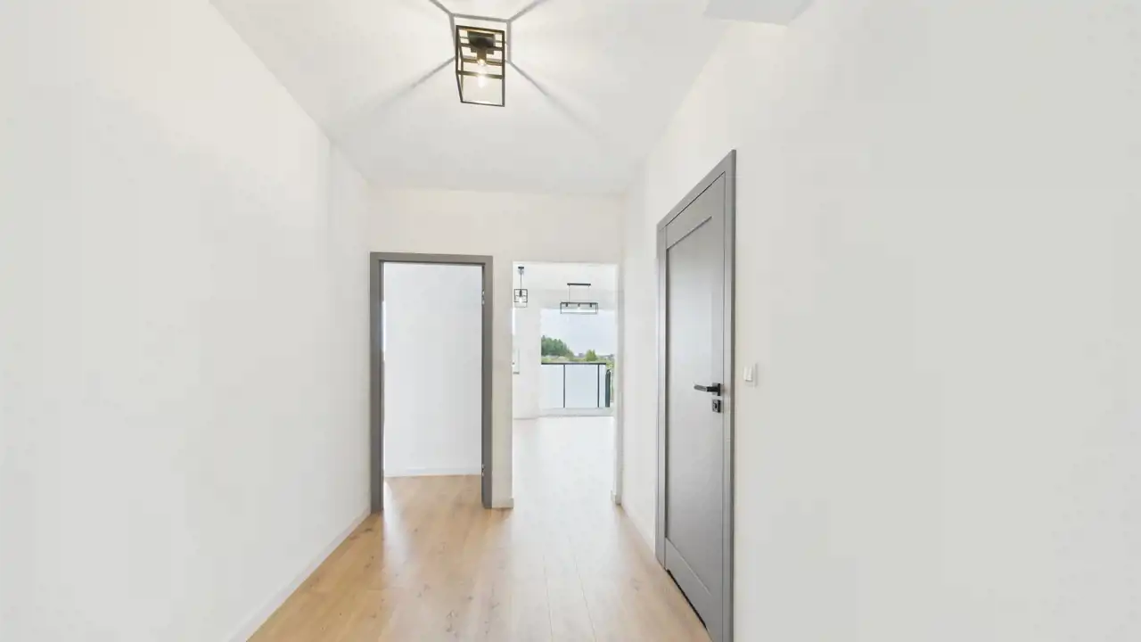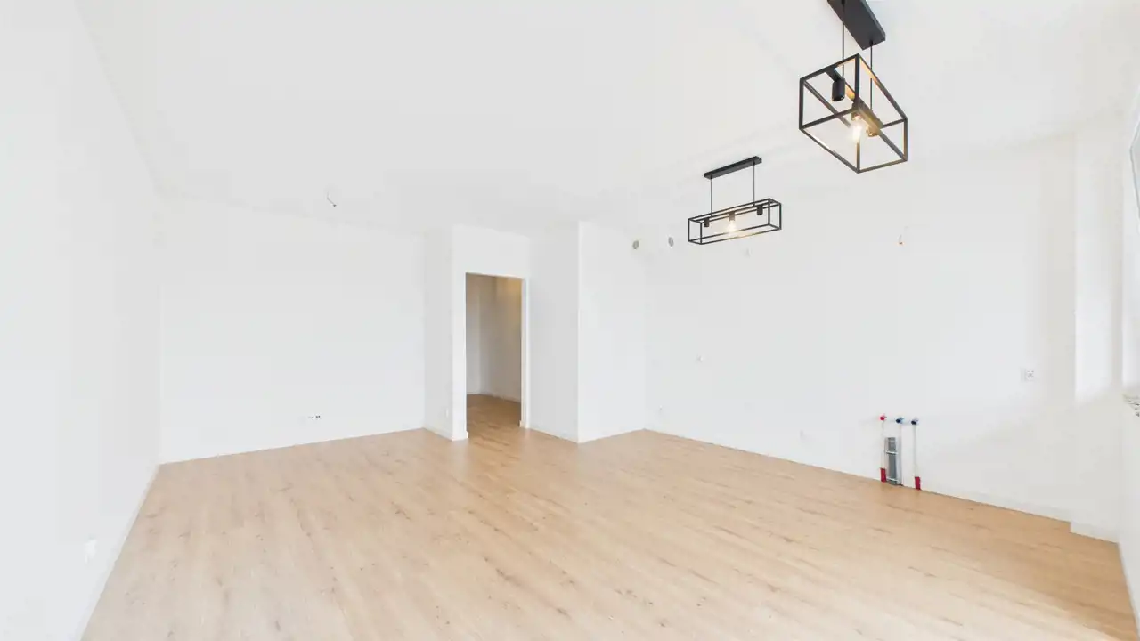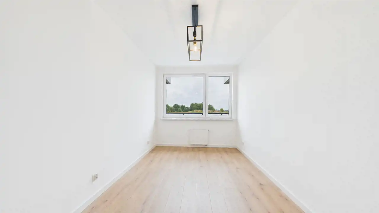 - podłogi z paneli, mieszkanie gotowe do wprowadzenia – wystarczy zabudować kuchnię i wnieść meble.