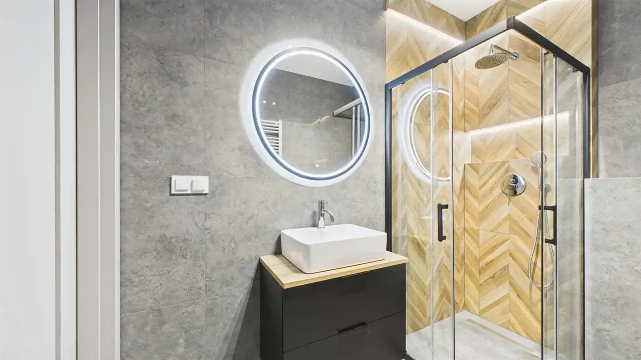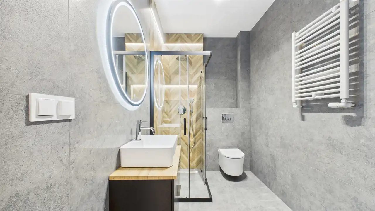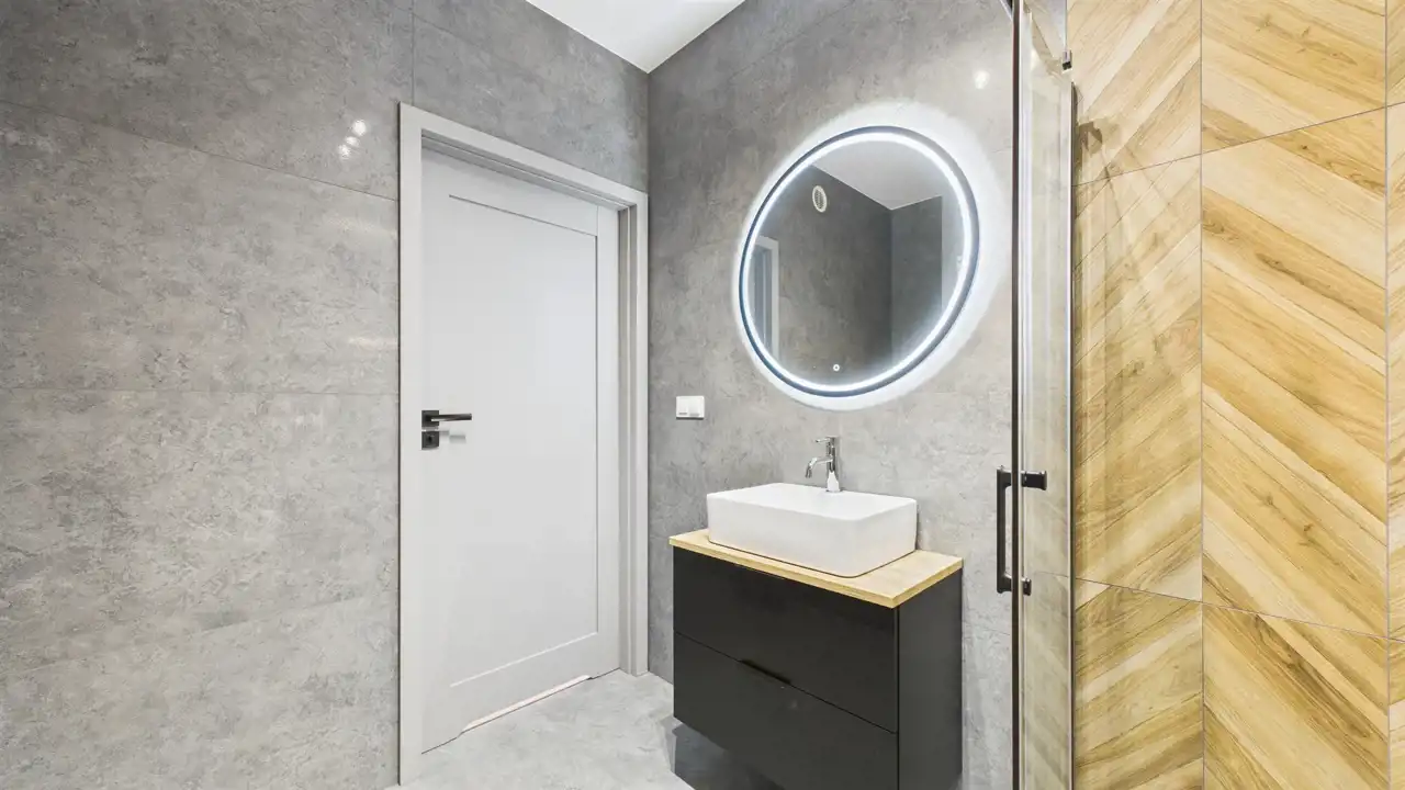 - łazienka w nowoczesnym stylu – w pełni wykończona, gotowa do użytkowania (miejsce na pralkę i suszarkę),