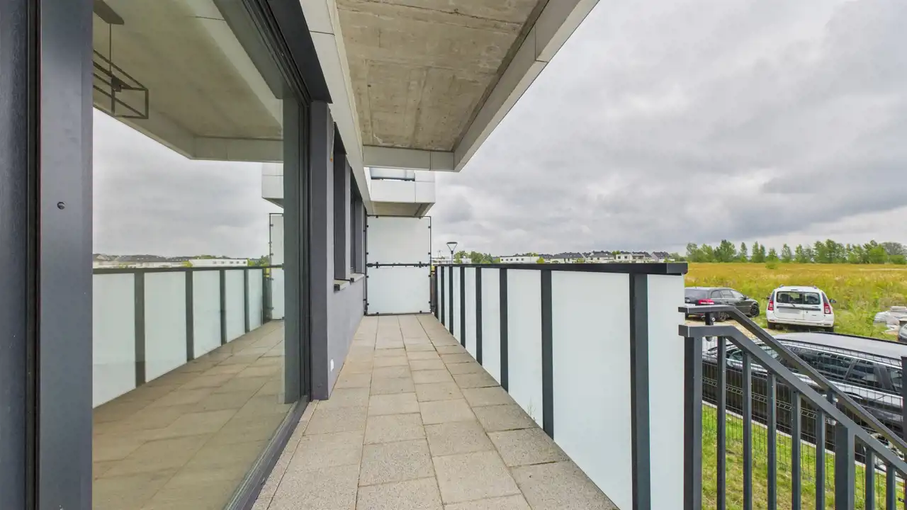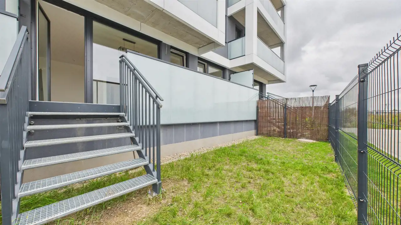 》》》Największym atutem jest ogromny balkon z wyjściem do prywatnego ogródka. To dobre miejsce na poranną kawę, a dla osób ze zwierzakiem – bezpieczna przestrzeń, gdzie pupil może spędzać czas na świeżym powietrzu.