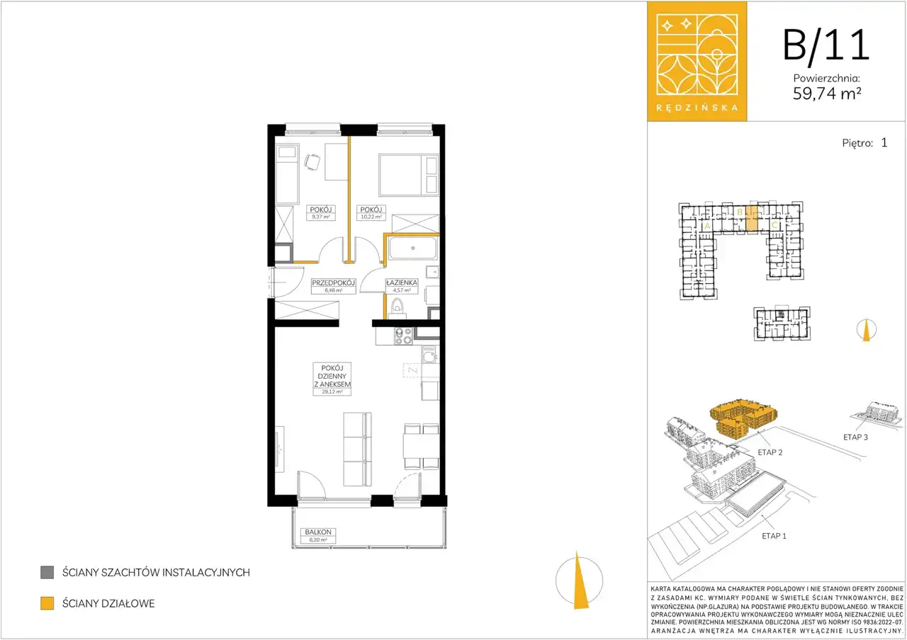 - Charakterystyka mieszkania 59.93 m2, 3 pokoje