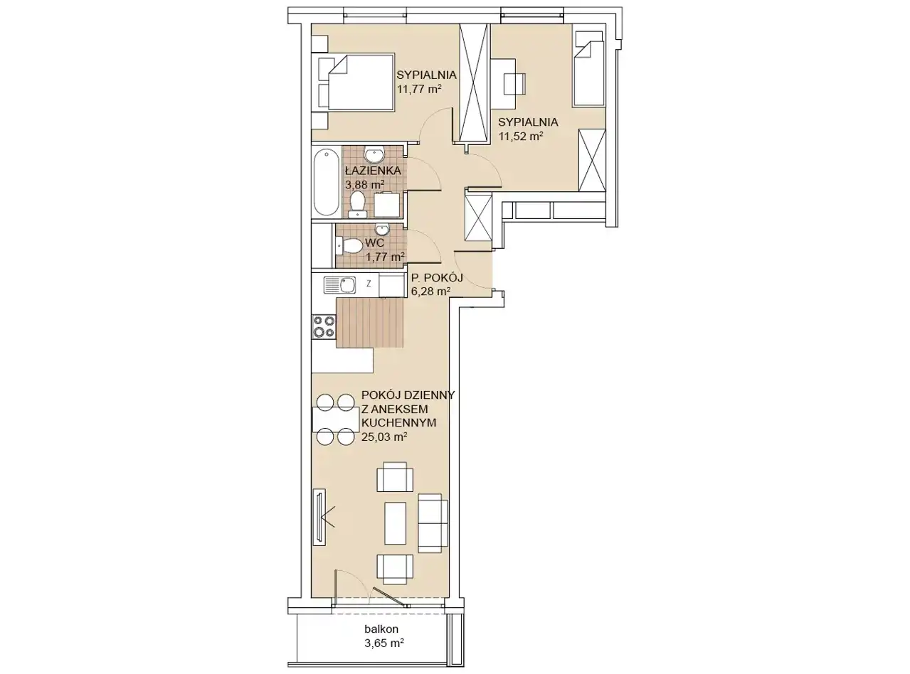 - Charakterystyka mieszkania 60.3 m2, 3 pokoje