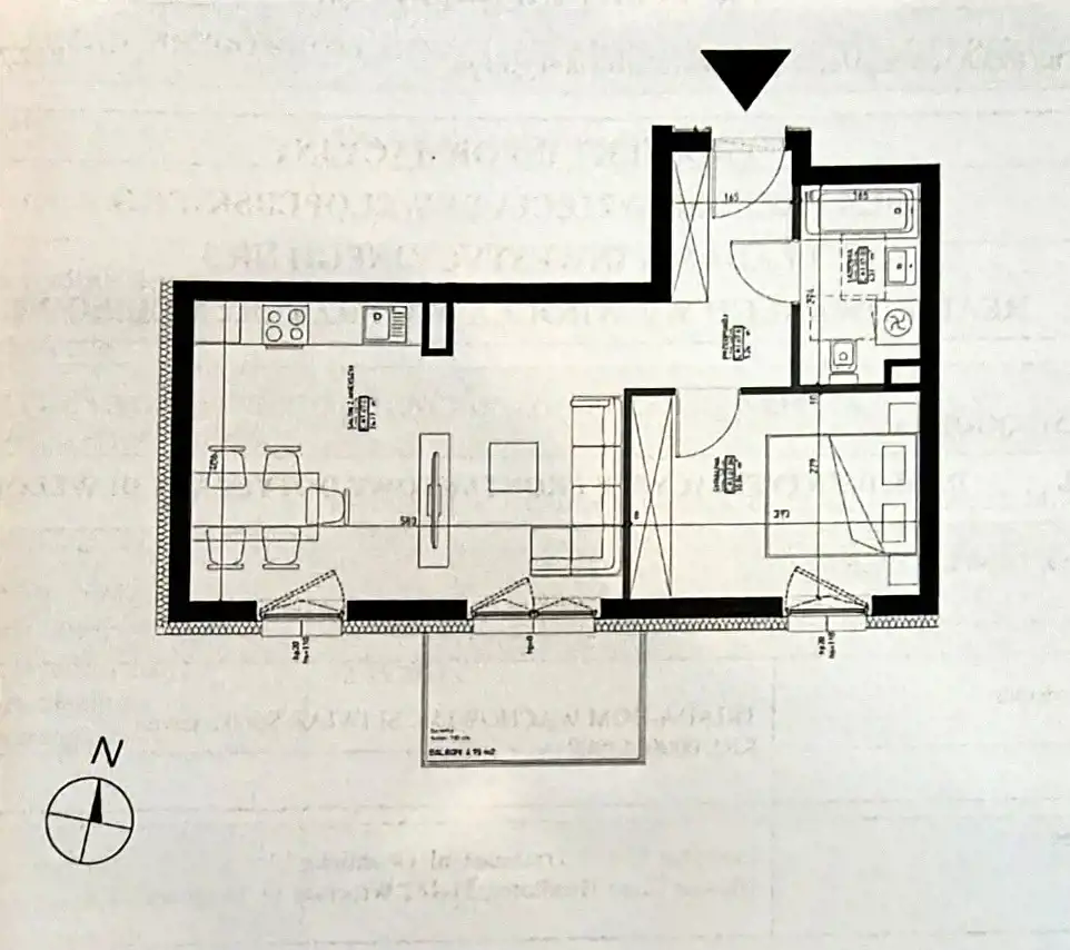 - Charakterystyka mieszkania 44.23 m2, 2 pokoje