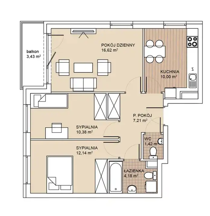 - Charakterystyka mieszkania 62 m2, 3 pokoje