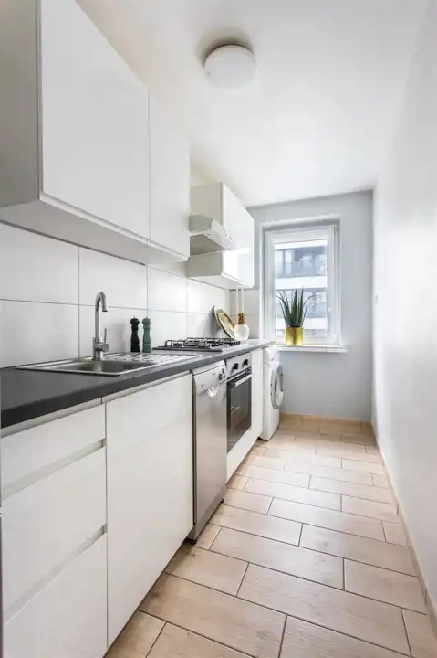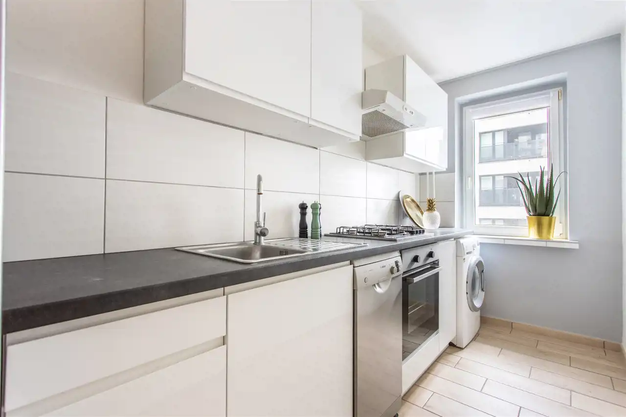 zmywarka, pralko-suszarka, piekarnik, kuchenka, duża lodówka - Wszystkie media miejskie