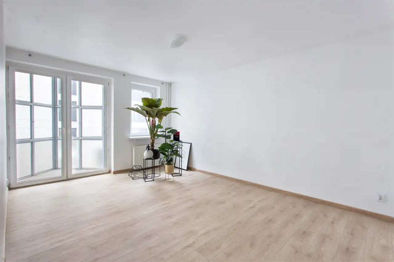 - Zabudowany balkon z wyjściem z salonu
