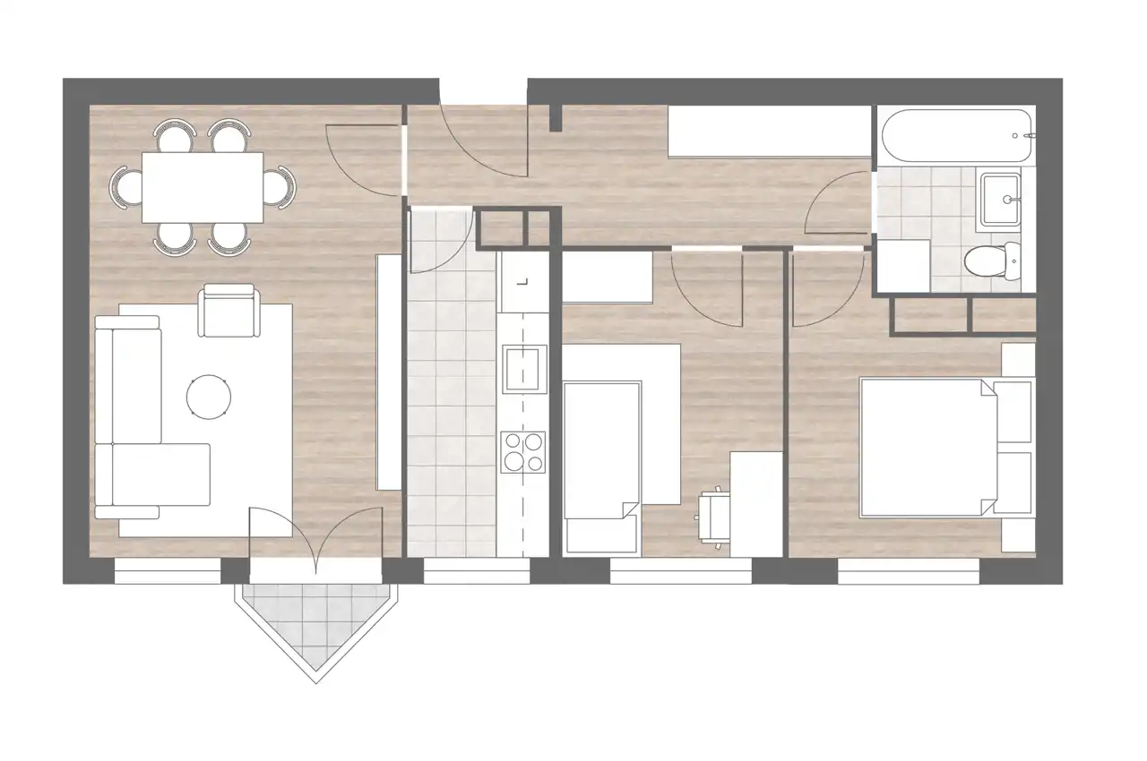 - Charakterystyka mieszkania 50.5 m2, 3 pokoje