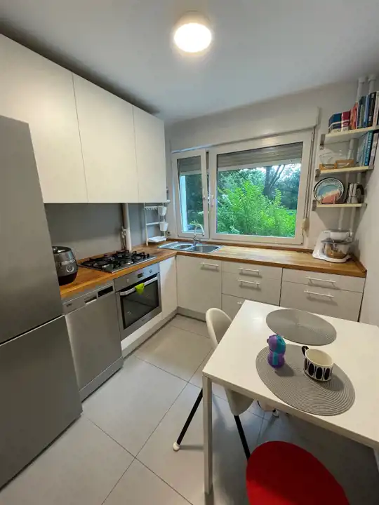 Wymienioną instalację elektryczną ( zabezpieczenie różnicowe ), wymienione piony wodno-kanalizacyjne, rolety zewnętrzne zamontowane we wszystkich oknach pcv, nową stolarkę drzwiową, ładną drewnianą podłogę, gładzie na ścianach, ładną łazienką, nowoczesną kuchnię wyposażoną w zmywarkę, lodówkę, piekarnik, kuchenkę gazową, szafę w przedpokoju, duży balkon, piwnicę oraz zieleń za oknami i ciszę.