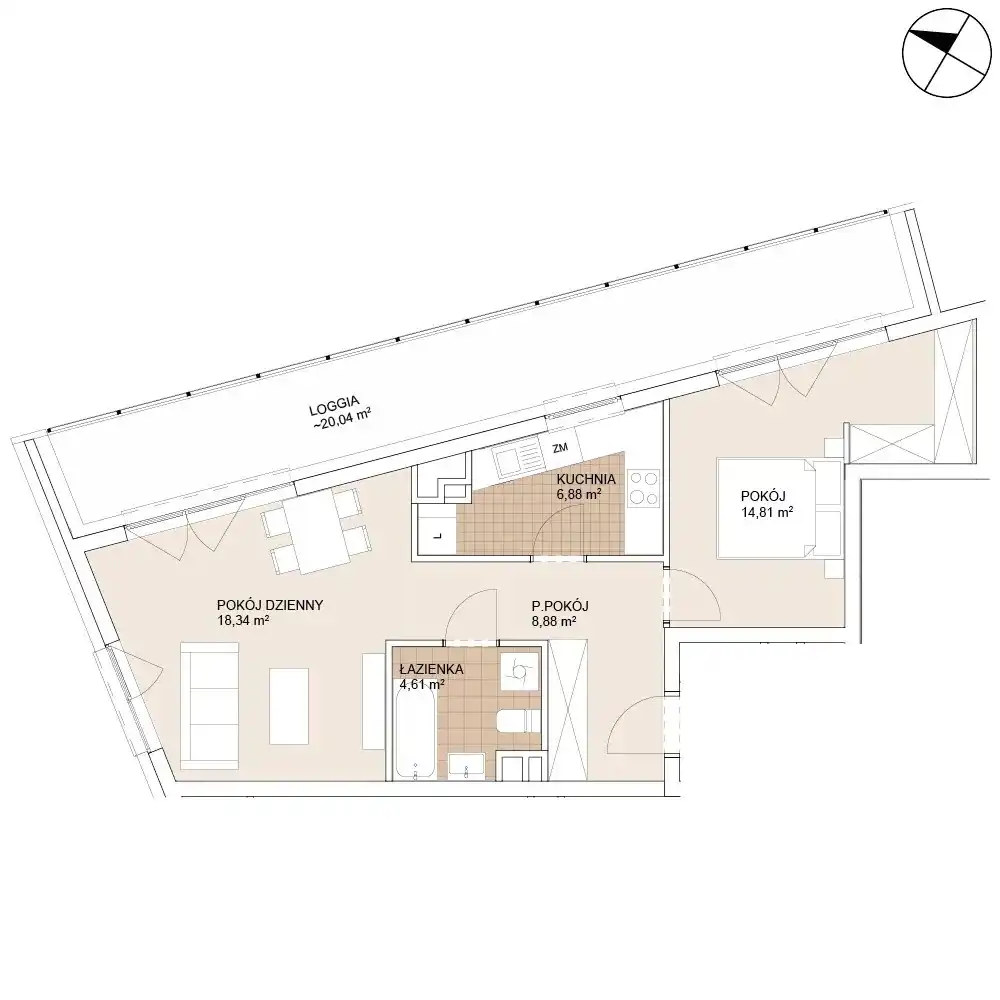- Charakterystyka mieszkania 53.52 m2, 2 pokoje