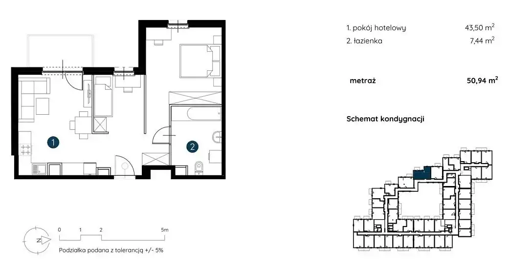 - Charakterystyka mieszkania 50.94 m2, 1 pokój