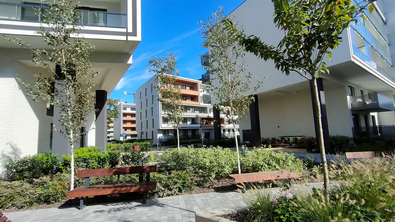 Doskonałą oprawę stworzy dla niej wypełniająca przestrzeń osiedla - bujna zieleń. Ocienione drzewami, biegnące wśród ozdobnych krzewów alejki będą prowadziły spacerujących nad oczka wodne, rozrzucone tak, żeby każdy znalazł dla siebie miejsce do relaksu, spotkania, zabawy. Tak malownicze otoczenie zapewni chwilę wytchnienia po intensywnym dniu, pozwoli odzyskać energię i wewnętrzną równowagę. Miłośnicy aktywnego spędzania wolnego czasu z pewnością docenią siłownię terenową, a królestwem dzieci stanie się pełen różnych atrakcji plac zabaw.