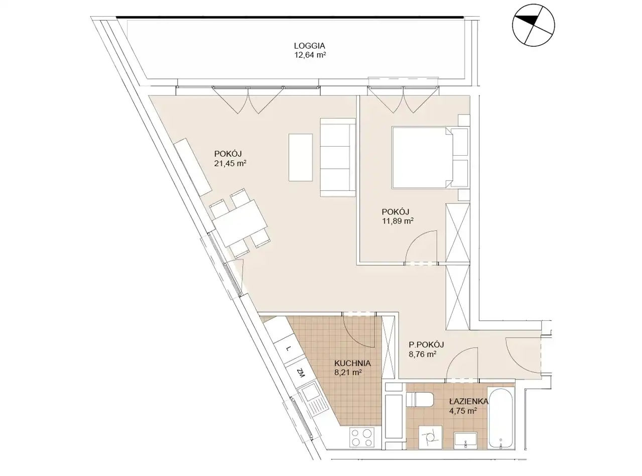 - Charakterystyka mieszkania 55.06 m2, 2 pokoje