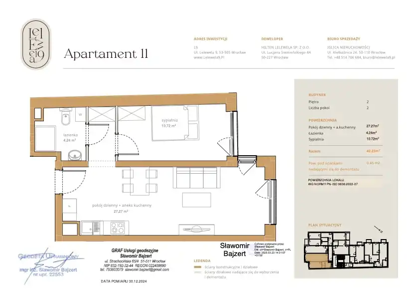 - Charakterystyka mieszkania 42.23 m2, 2 pokoje