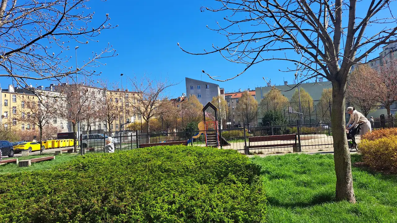 - Na patio znajduje się plac zabaw, który widać z balkonu,