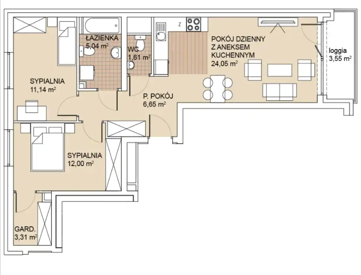 - Charakterystyka mieszkania 63.8 m2, 3 pokoje