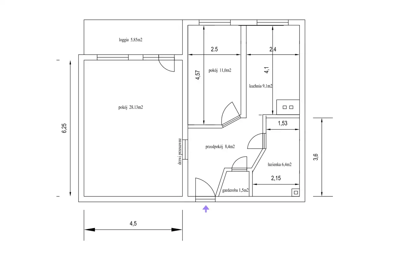 - Charakterystyka mieszkania 66.5 m2, 2 pokoje
