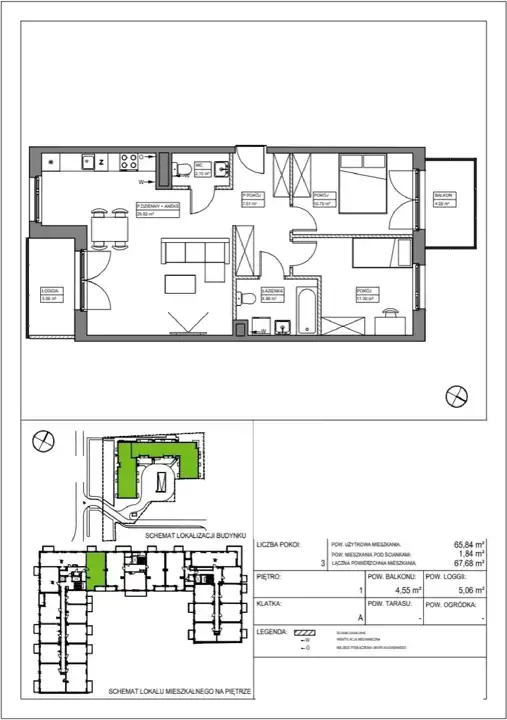 - Charakterystyka mieszkania 65.84 m2, 3 pokoje