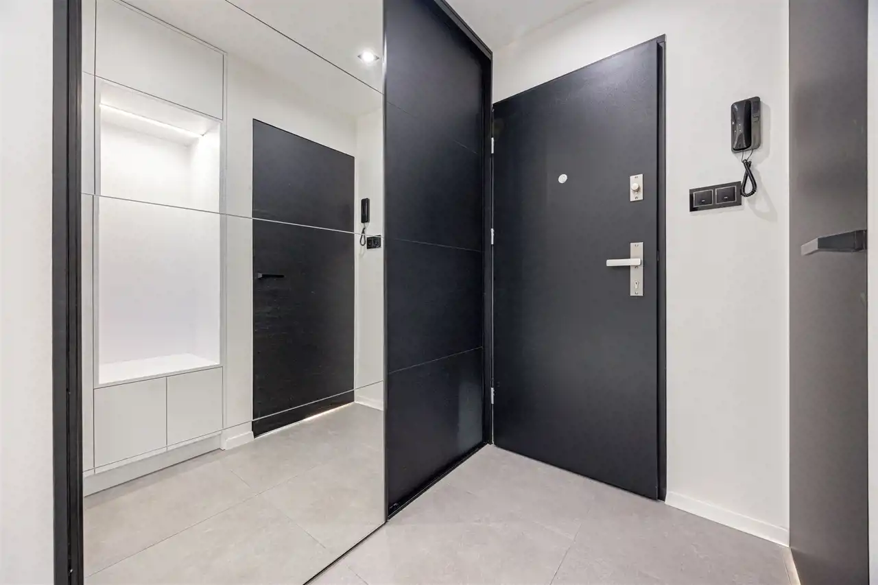 wewnętrzne drzwi z pełnym wypełnieniem, powłoka antystatyczna i odporna na ślady palców,