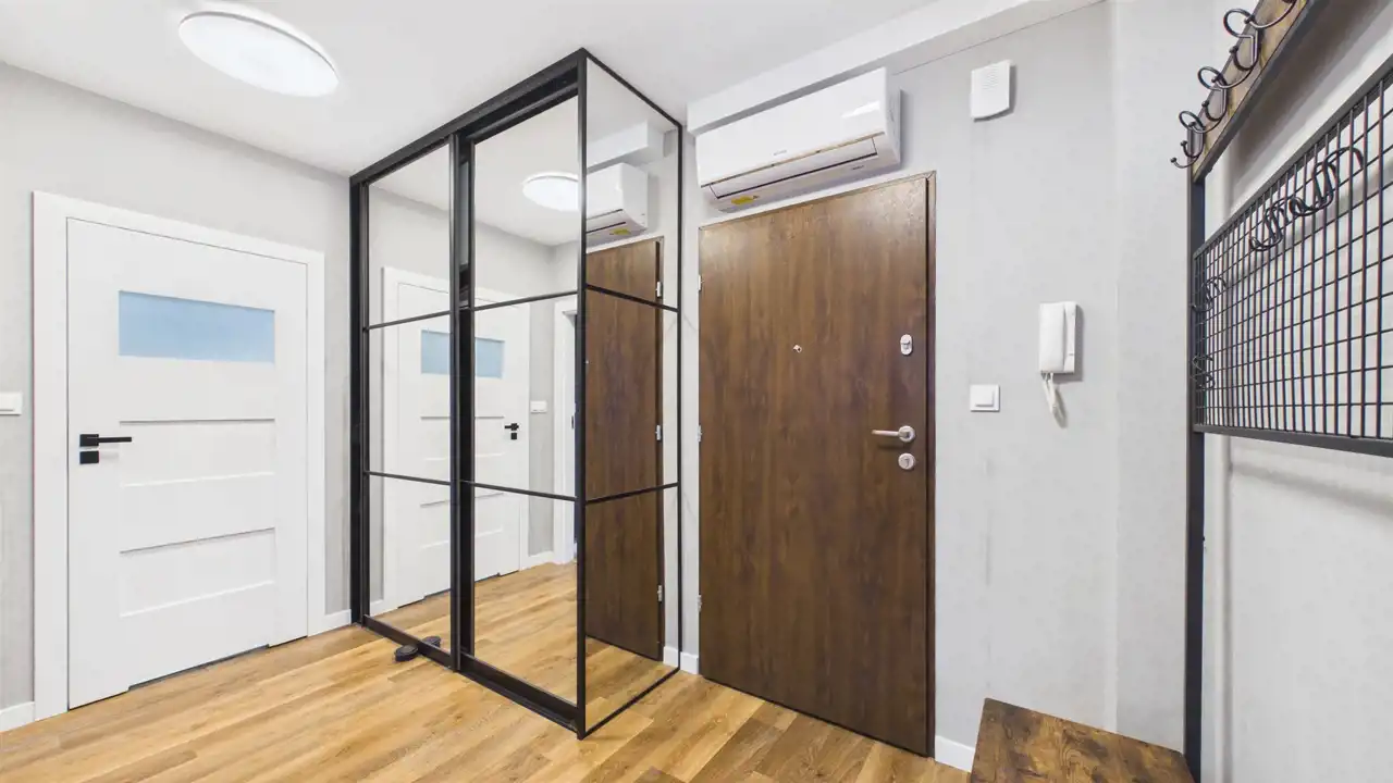 przedpokój z pojemną szafą w zabudowie,