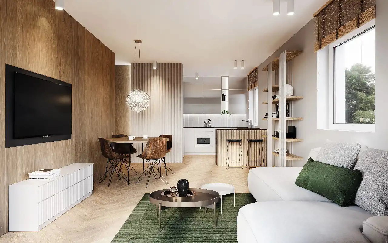 - pokój dzienny z aneksem kuchennym 24 m2