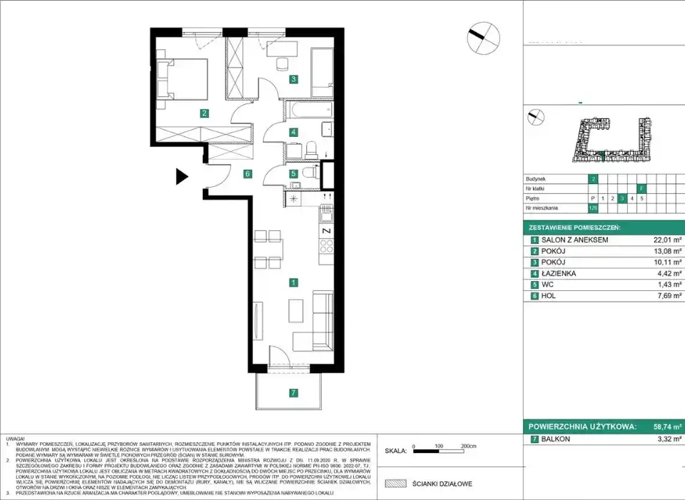 - Charakterystyka mieszkania 58.74 m2, 3 pokoje