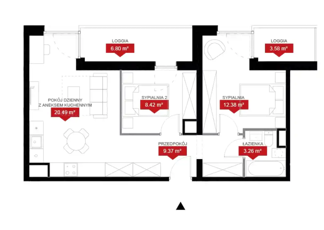 Dodatkowo do mieszkania przynależą 2 balkony o powierzchni 6.80m2 i 4m2