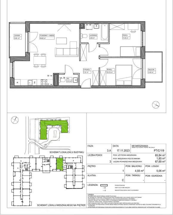 - Charakterystyka mieszkania 67.69 m2, 3 pokoje