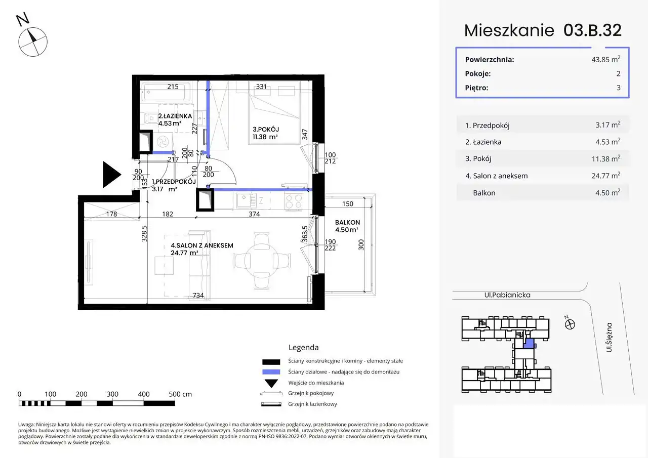 - Charakterystyka mieszkania 43.85 m2, 2 pokoje