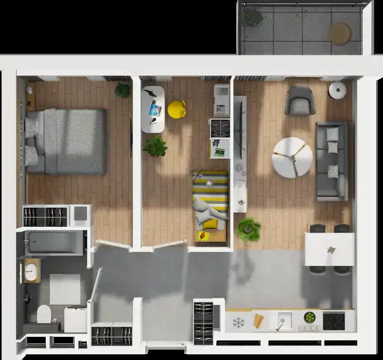 - Charakterystyka mieszkania 53.9 m2, 3 pokoje