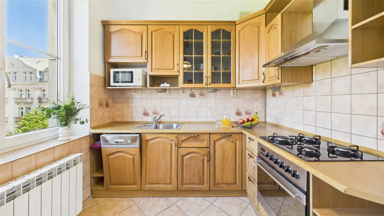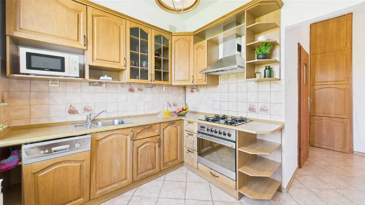 • Kuchnia z solidnymi, drewnianymi meblami – gotowa do użytku