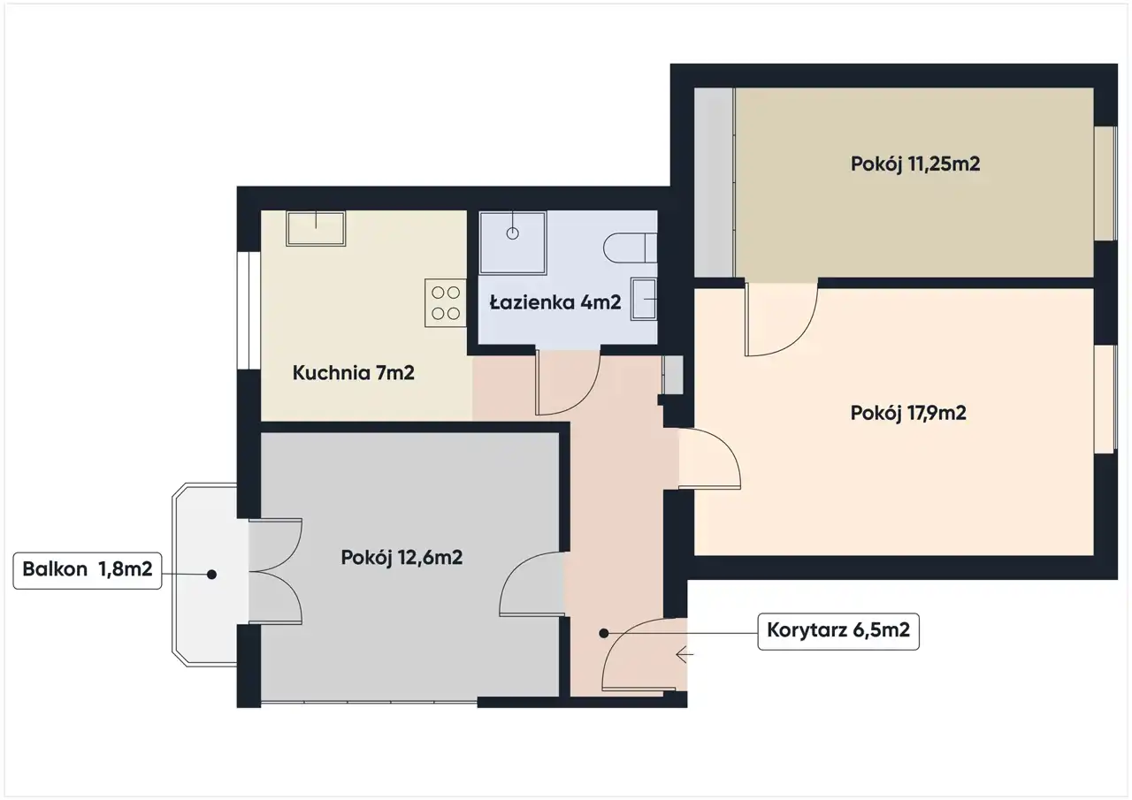 3-pokojowe mieszkanie z balkonem - 59,25m2